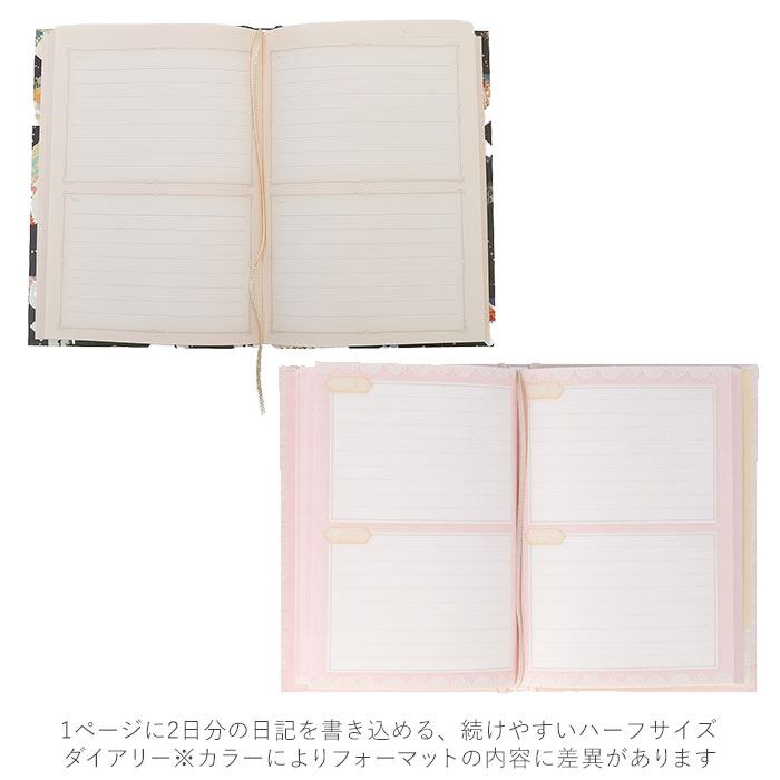 1ページに2日分の日記を書き込める、続けやすいハーフサイズ。192ページ、384日分の記録を書き込めるダイアリー。