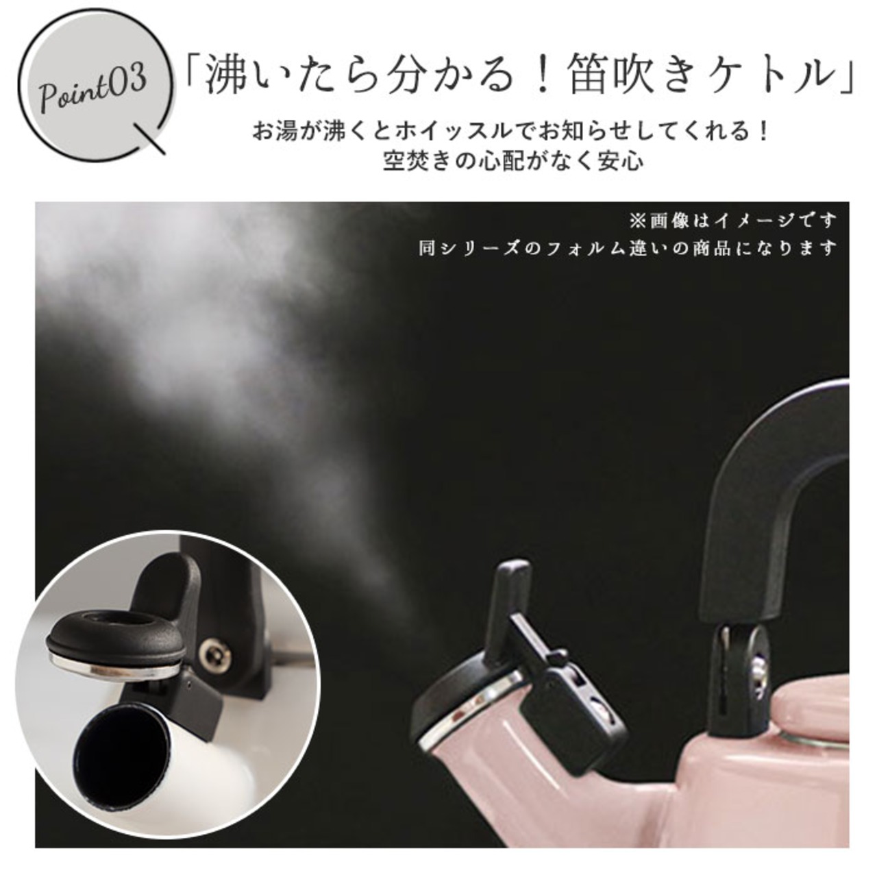・お湯が沸くとホイッスルでお知らせしてくれるから、空焚きの心配がなく安心。