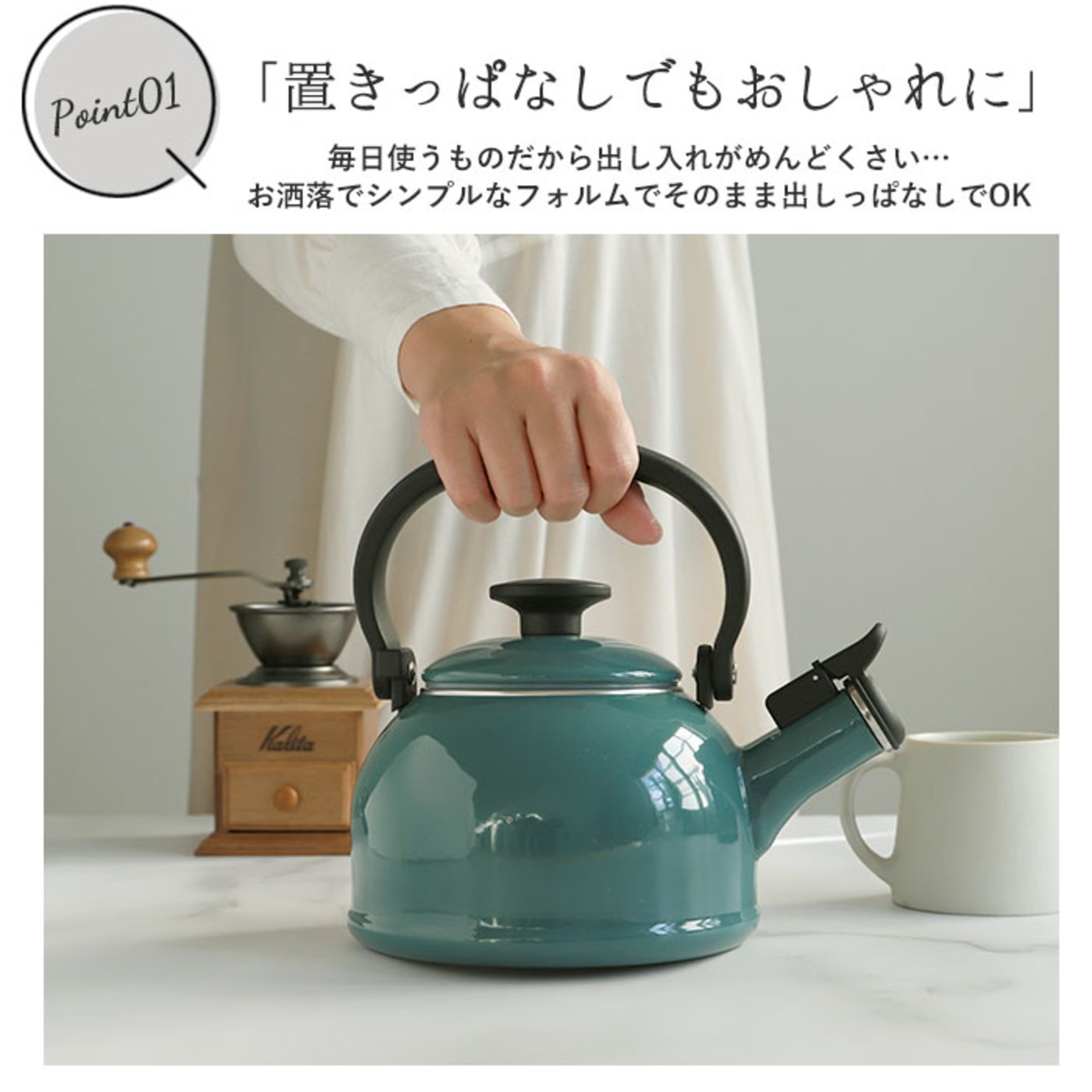 ・丈夫さとシンプルデザインが魅力!「富士ホーロー コットンシリーズ」の笛吹きケトル(満水容量1.6L)が登場。