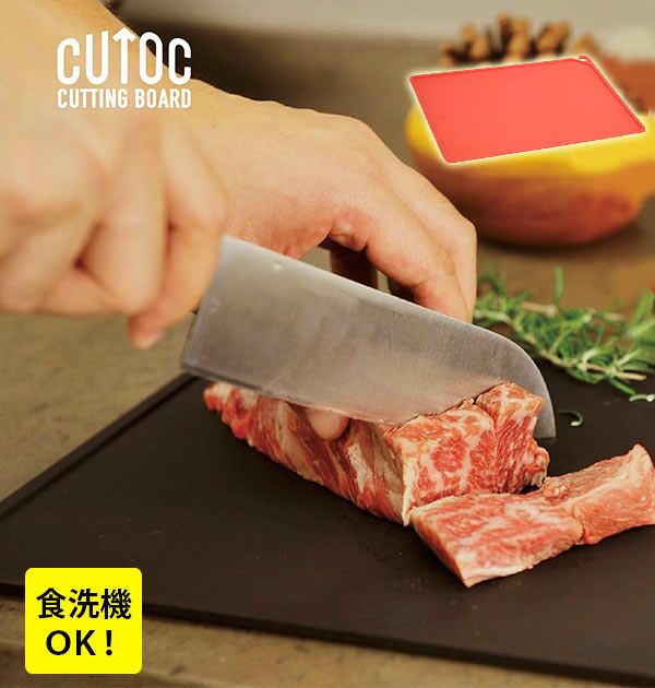 カッティングボード 通販 プラスチック 耐熱 抗菌 食洗機対応 薄型 薄い うすい CUTOC TPU素材 ゴム 軽い 軽量 ブラック 黒 レッド 赤 キッチン用品 キッチン雑貨 エンボス加工 便利 水切り用の傾斜付 まな板 まないた 俎板 両面使える 両面使用 柔らかい