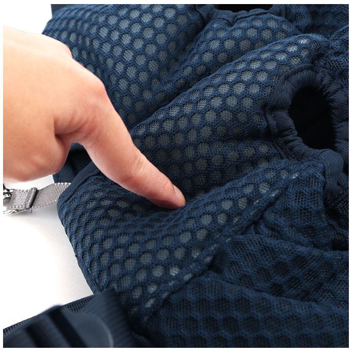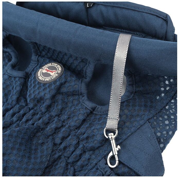 ・ハニカム形状に編まれた生地にメッシュ生地を重ね合わせた素材使いで、通気性もしっかりと確保。暑さが気になる時期でもワンちゃん快適。