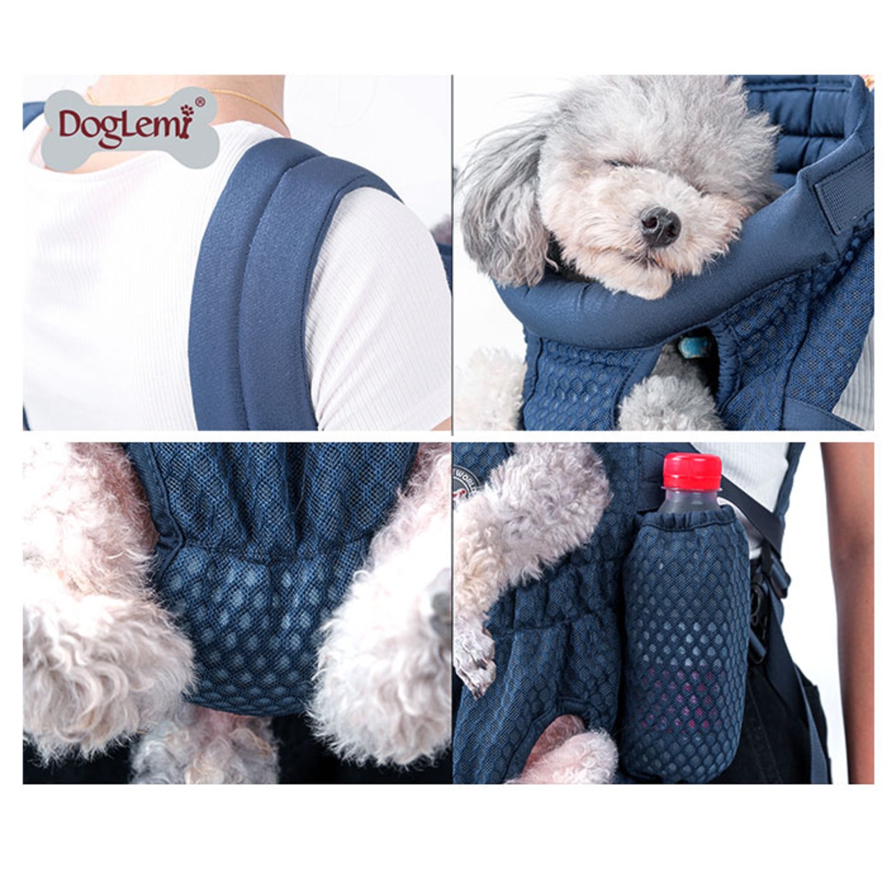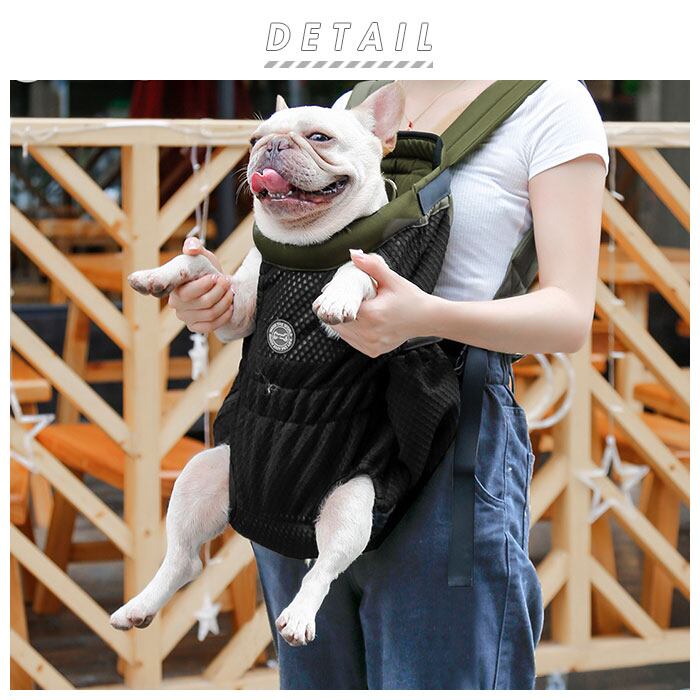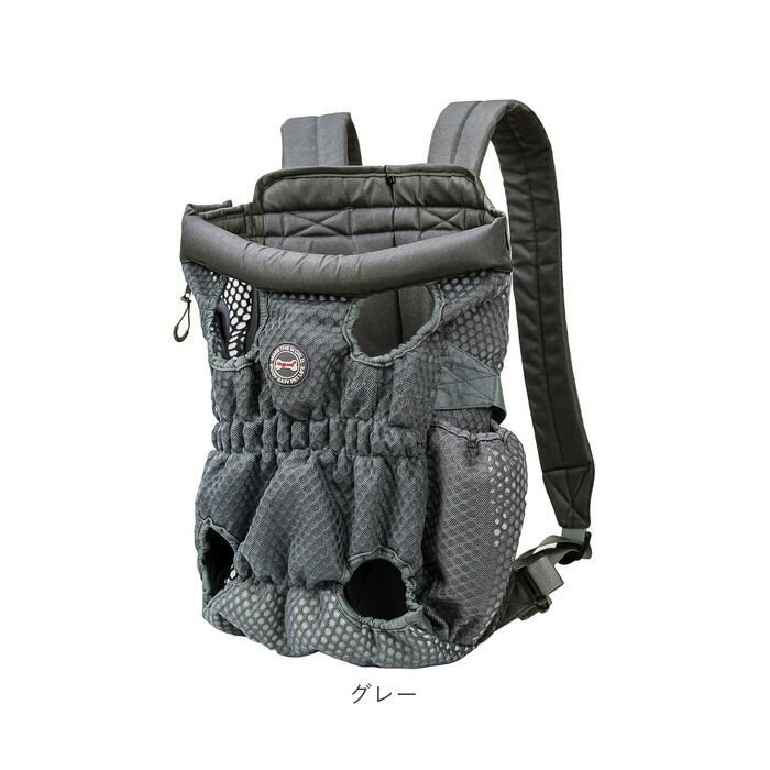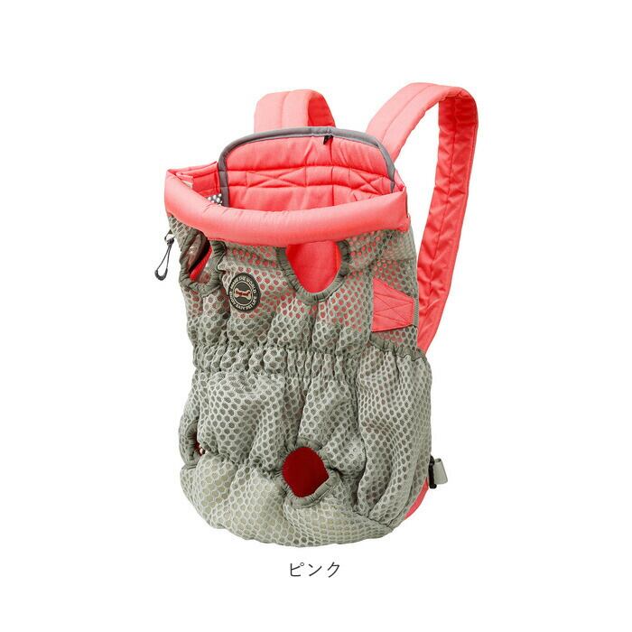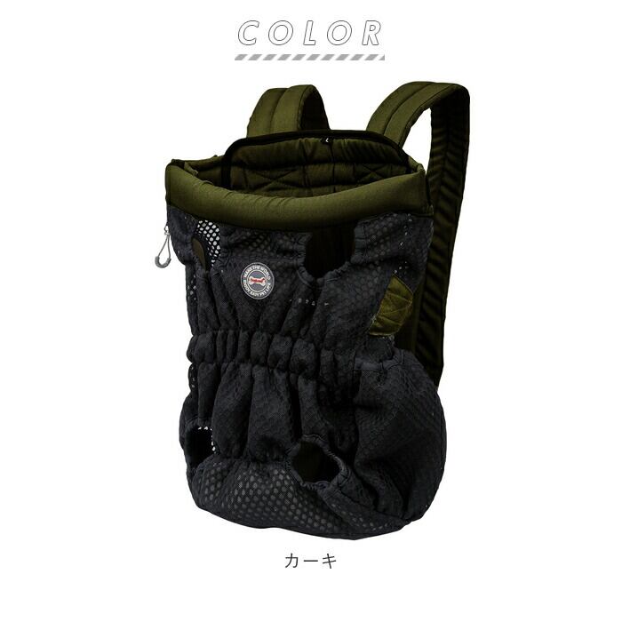 ・ワンちゃんの両手足と尻尾をバッグから出して装着する、フィット感抜群のキャリーバッグ。ペットとの密着度の高いデザインなので、ワンちゃんも飼い主さんも安心してお出掛けできる!
