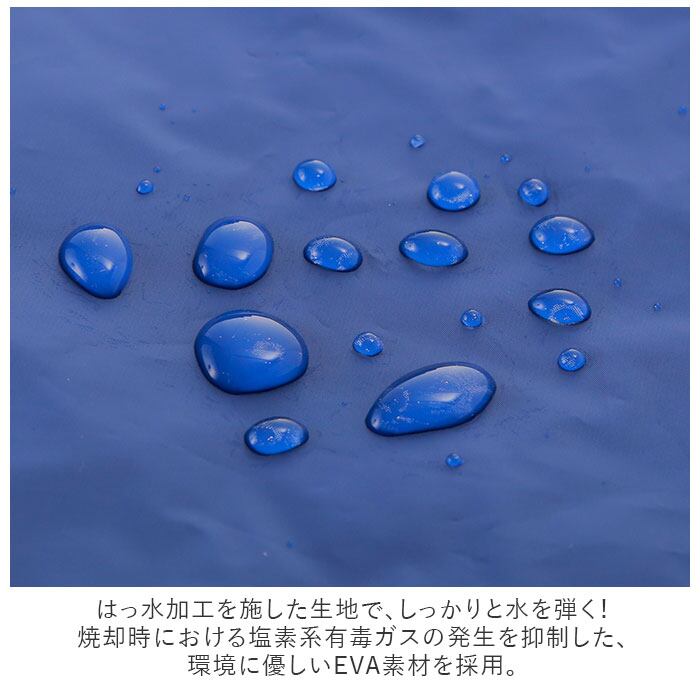 ・はっ水加工を施した生地で、しっかりと水を弾く!焼却時における塩素系有毒ガスの発生を抑制した、環境に優しいEVA素材を採用。