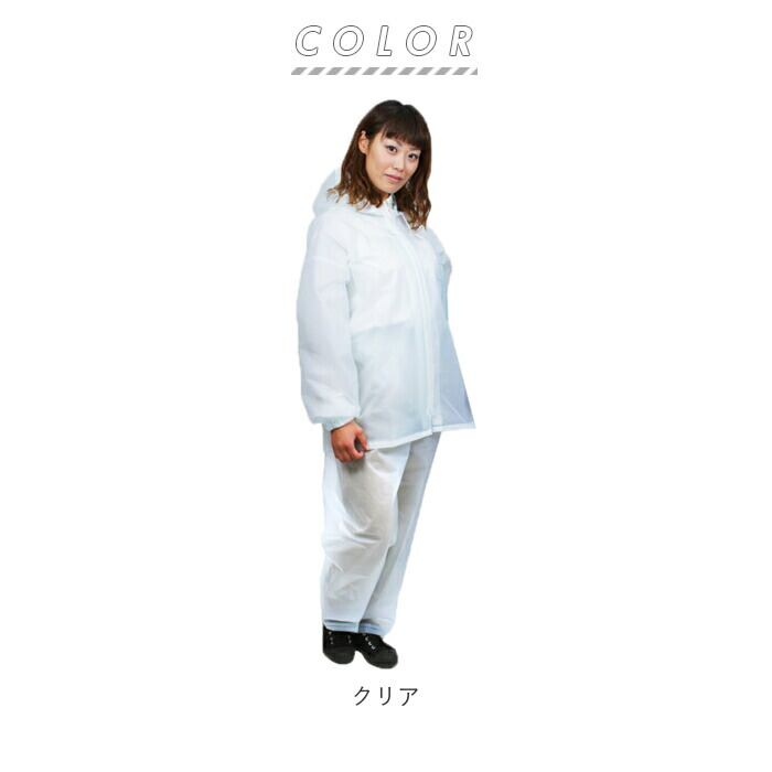 ・EVA樹脂素材でしっかり防水!軽くて携帯に便利なレインパーカスーツ、パーカーとパンツの上下セット。