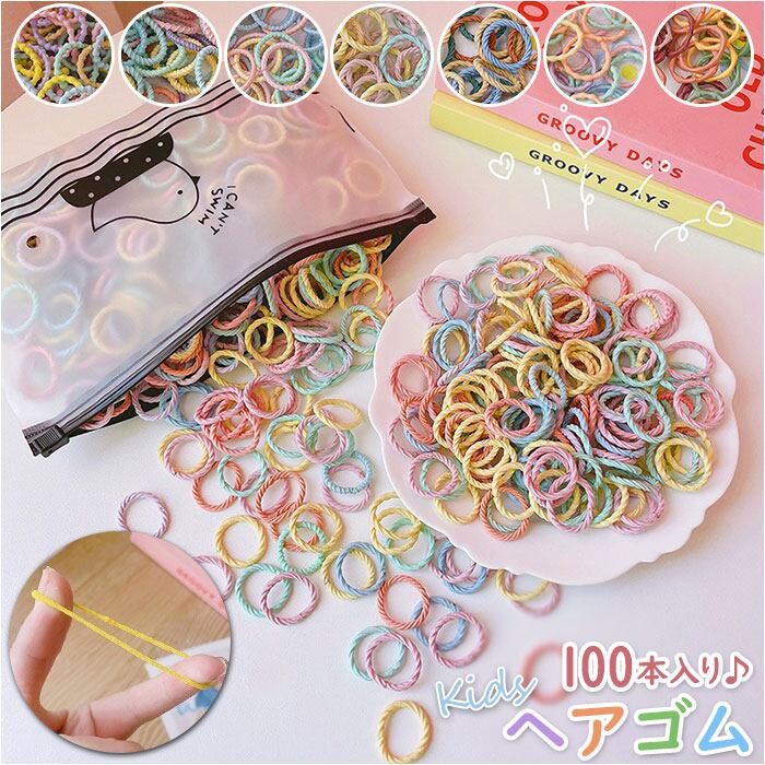 ヘアゴム キッズ 詰め合わせ 通販 100本入り リングゴム 子供用 カラフル ヘアアクセサリー 髪飾り 柔らかい 使いやすい 小さい かわいい キュート キッズ アクセサリー 幼児 女の子