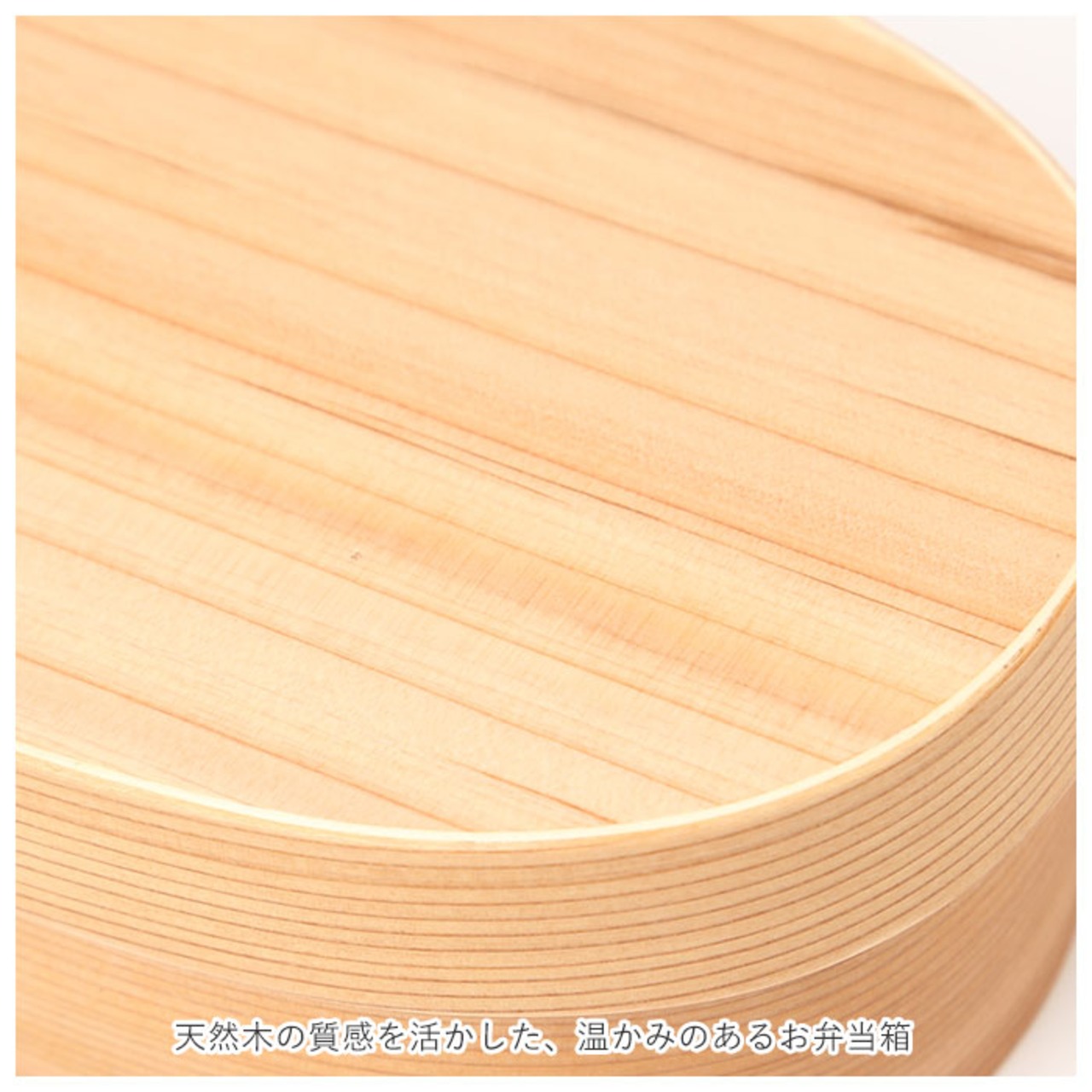 ・天然木の質感を活かした、温かみのあるお弁当箱。木本来の調湿作用が余分な水分を吸収してくれるので、冷めてもふっくらとした美味しいごはんが食べられる◎