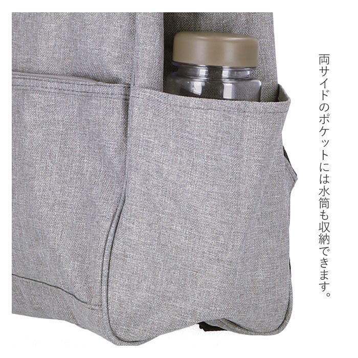 ・両サイドにペットボトルや折り畳み傘が入るオープンポケット付き。