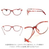 ・半透明素材のフレームやテンプルに施された、マーブル模様やバイカラーデザインが表情に華やかさをプラス!ほのかに遊び心を感じさせるデザインが魅力。
