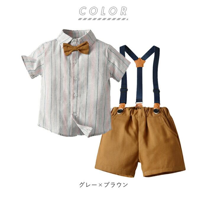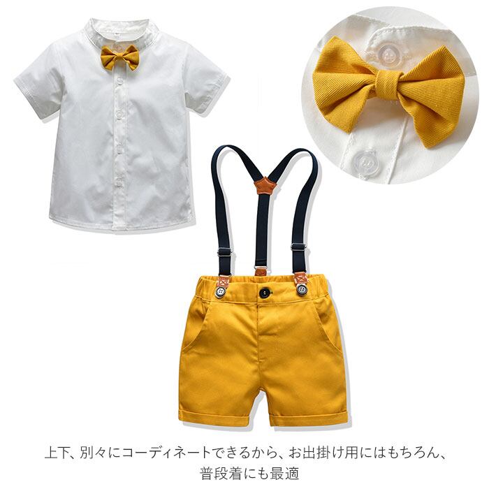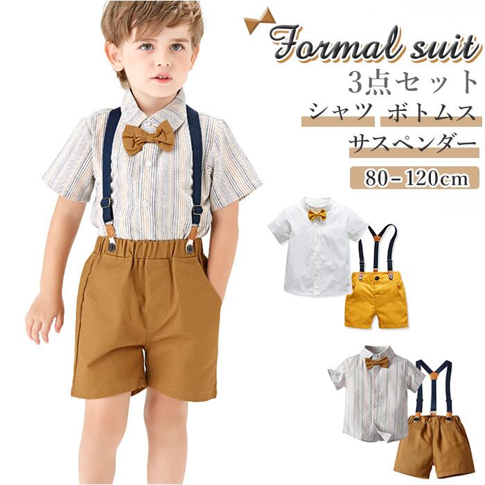 男の子 フォーマル ハーフパンツ 通販 入園式 卒園式 ベビー服 スーツ 3点 セット 80 90 100cm 110 120 cm 子供 春 夏 おしゃれ 赤ちゃん セットアップ 半袖 シャツ 蝶ネクタイ サスペンダー 発表会 七五三 子供服 キッズ ボーイズ