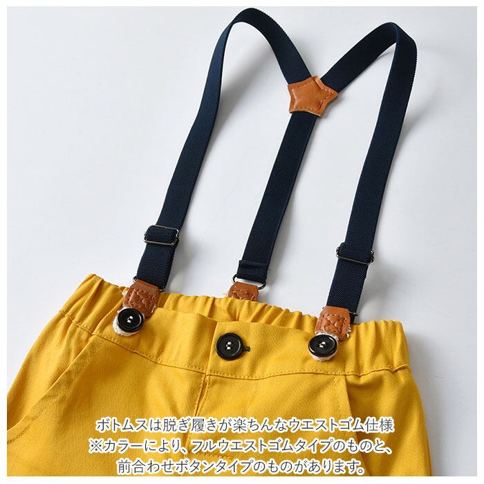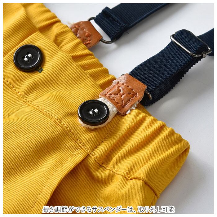 ・長さ調節ができるサスペンダーは、取り外し可能。