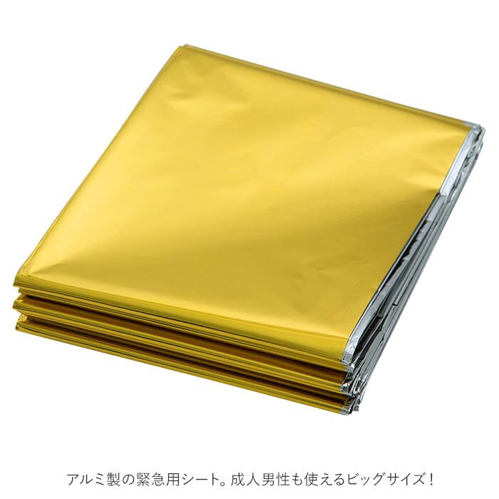 ・アルミ製の緊急用シート。成人男性も使えるビッグサイズ!