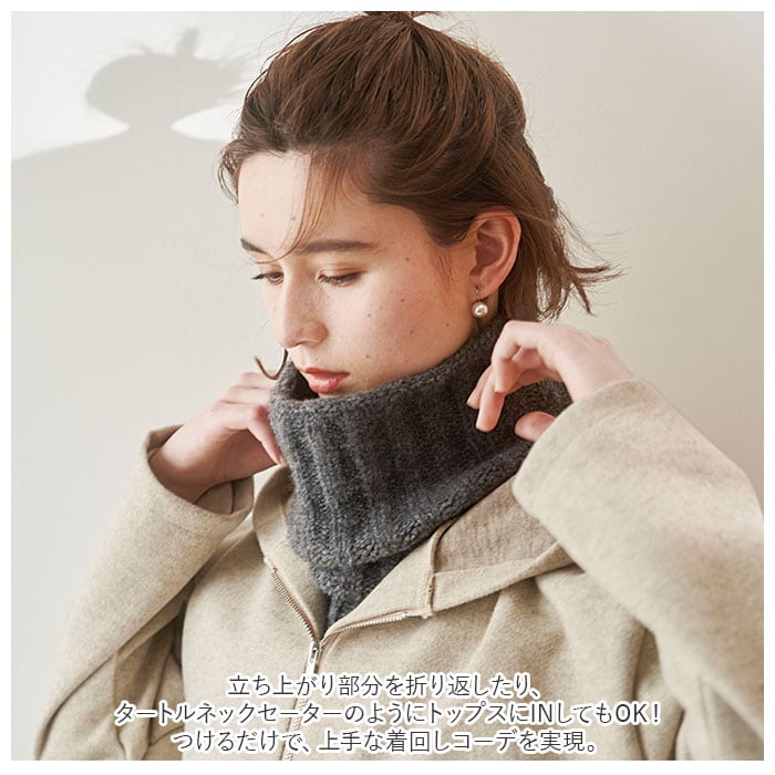 ・立ち上がり部分を折り返したり、タートルネックセーターのようにトップスにINしてもOK!つけるだけで、上手な着回しコーデを実現。