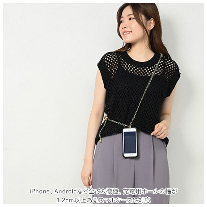 ・うれしい全機種対応!首から下げておくことで、移動中もサッと操作できるスマートフォンストラップ(チェーン&パール)が登場。