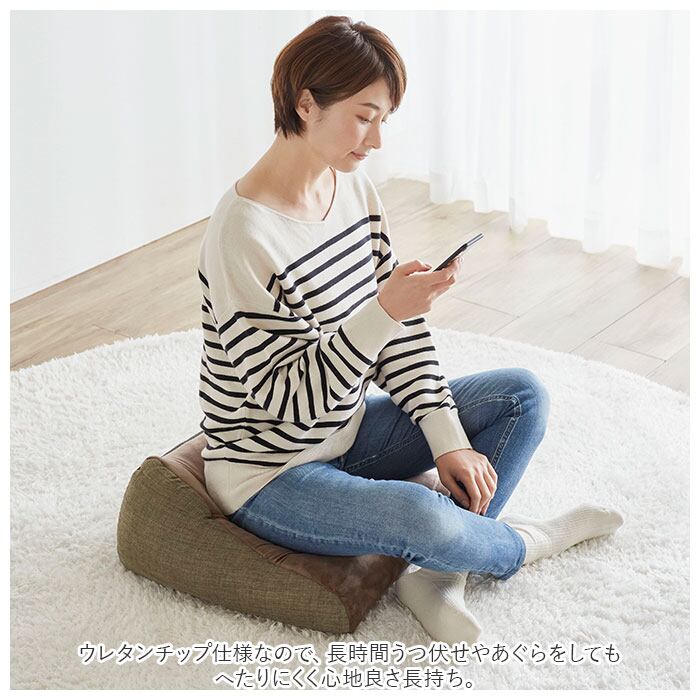 ・ウレタンチップ仕様なので、長時間うつ伏せやあぐらをしてもへたりにくく心地良さ長持ち。