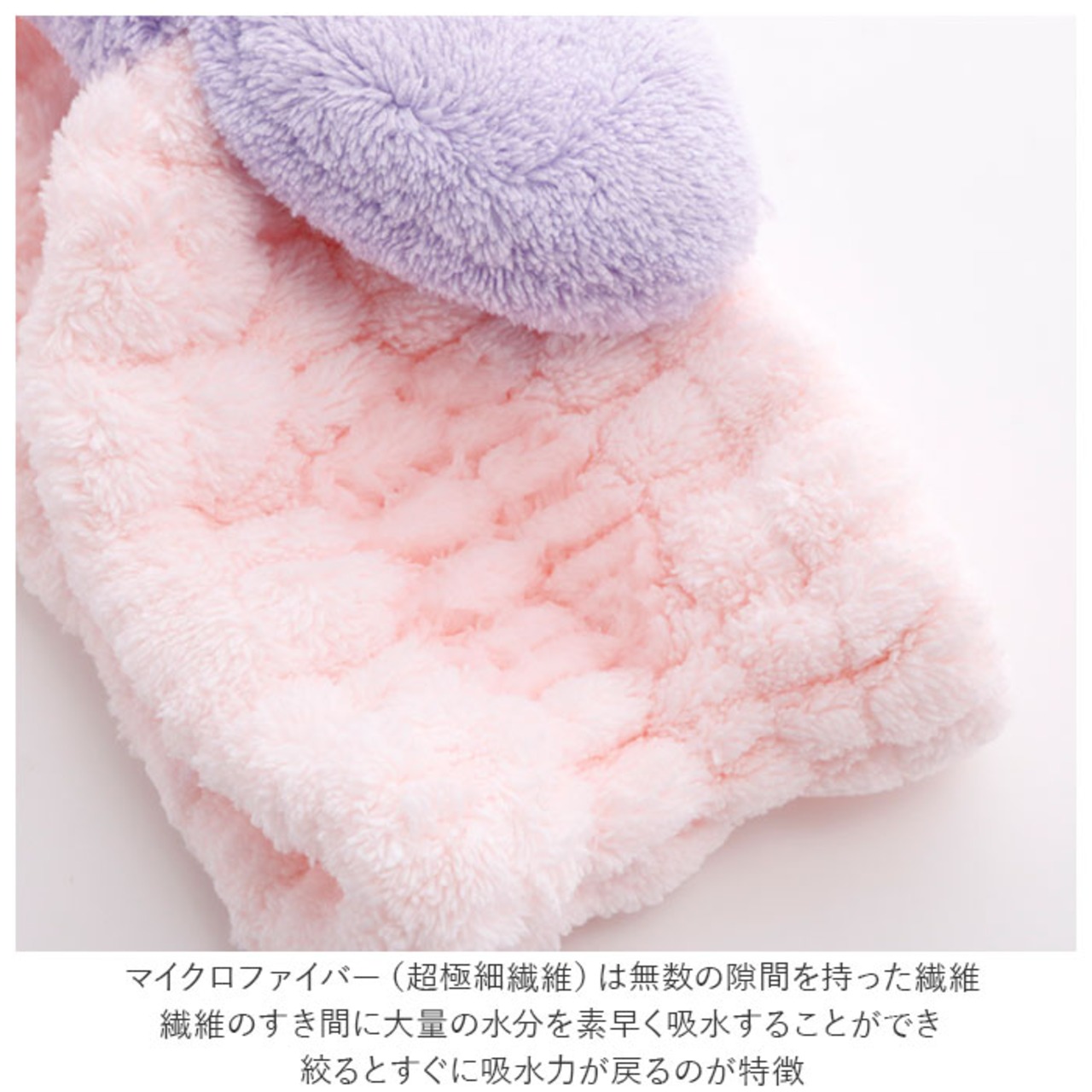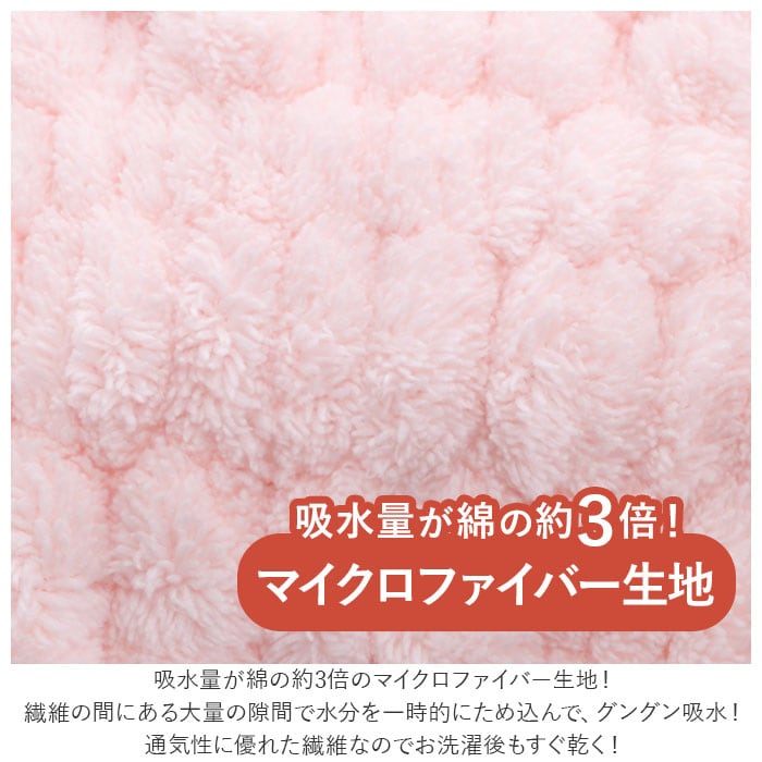 ・吸水量が綿の約3倍のマイクロファイバー生地!繊維の間にある大量の隙間で水分を一時的にため込んで、グングン吸水!通気性に優れた繊維なのでお洗濯後もすぐ乾く!