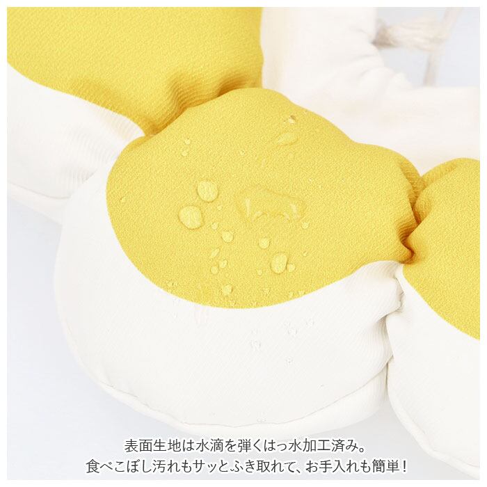 ・表面生地は水滴を弾くはっ水加工済み。食べこぼし汚れもサッとふき取れて、お手入れも簡単!(※完全防水ではありません。)