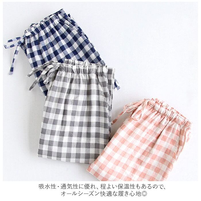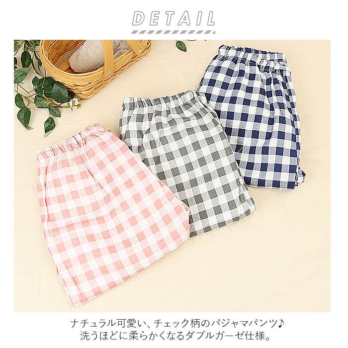 ・ナチュラル可愛い、チェック柄のパジャマパンツ♪