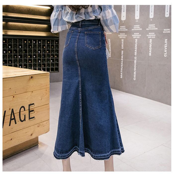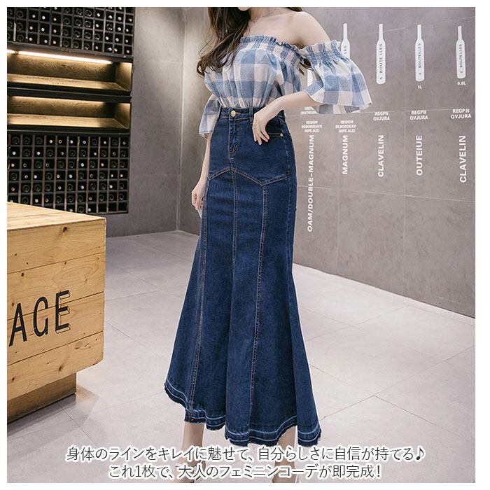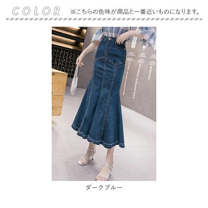 マーメイドスカート デニム 通販 ロングスカート デニムスカート スカート マーメイド タイト ロング マキシ丈 フリル ハイウエスト フレアスカート 秋 春夏 シンプル 無地 おしゃれ カジュアル かわいい ナチュラル マキシ丈スカート ボトムス レディースファッション