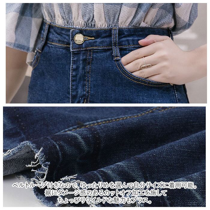・裾にダメージ感のあるカットオフ加工を施して、ちょっぴりワイルドな魅力もプラス。