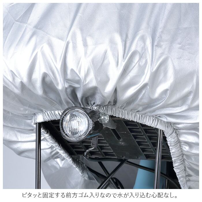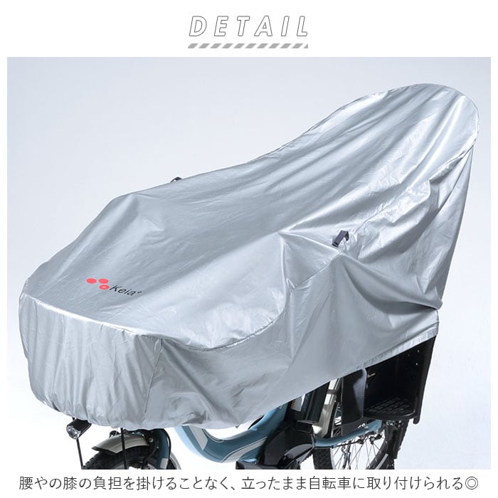 ・リアチャイルドシート付き電動アシスト車・シティ車まで、幅広い自転車に対応。(※自転車のサイズ、形状によって被りこみ具合は異なります。)