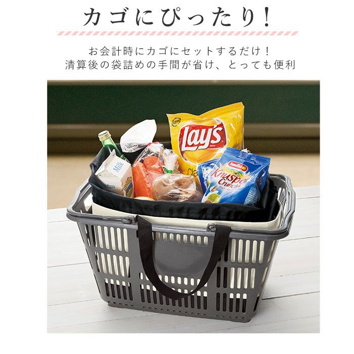 自転車かごにすっぽり入り、レジかごのサイズでお買い物が楽になるバッグです。