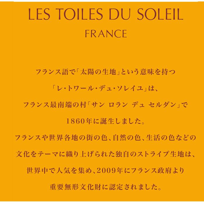・「レ・トワール・デュ・ソレイユ」とは、フランス語で「太陽の生地」という意味。フランスや世界各地の街の色、自然の色、生活の色などの文化をテーマに織り上げられた独自のストライプ生地は、世界中で人気を集め、重要無形文化財に認定。