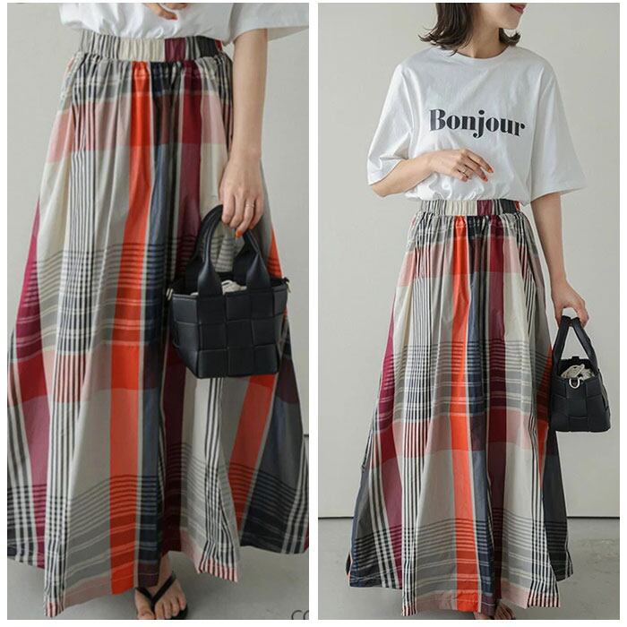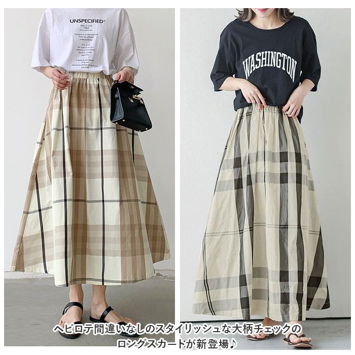 ・ヘビロテ間違いなしのスタイリッシュな大柄チェックのロングスカートが新登場♪