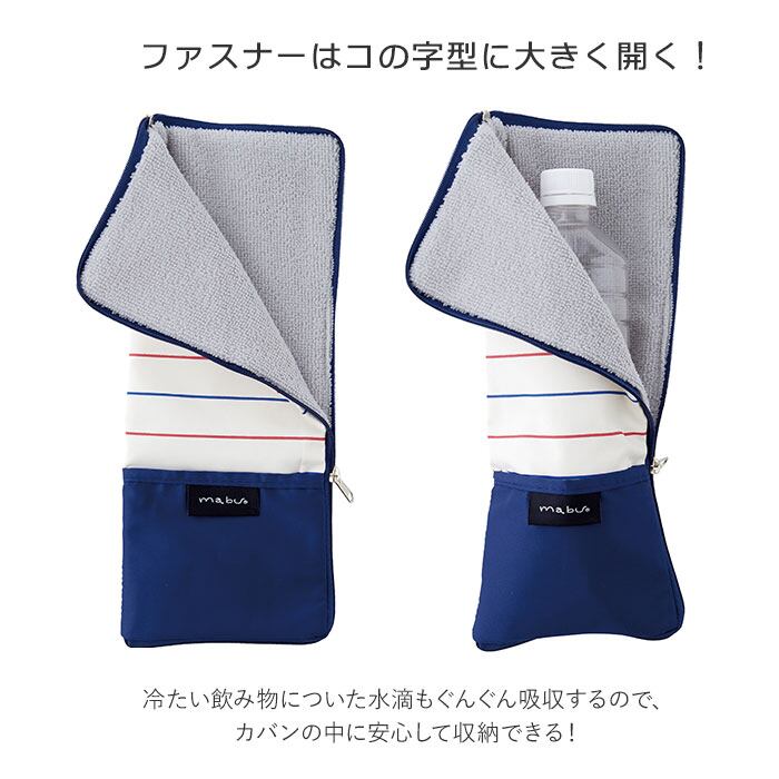 ・折りたたみ傘だけでなく、500mlペットボトル用ポーチにも使えて便利!冷たい飲み物についた水滴もぐんぐん吸収するので、カバンの中に安心して収納できる!