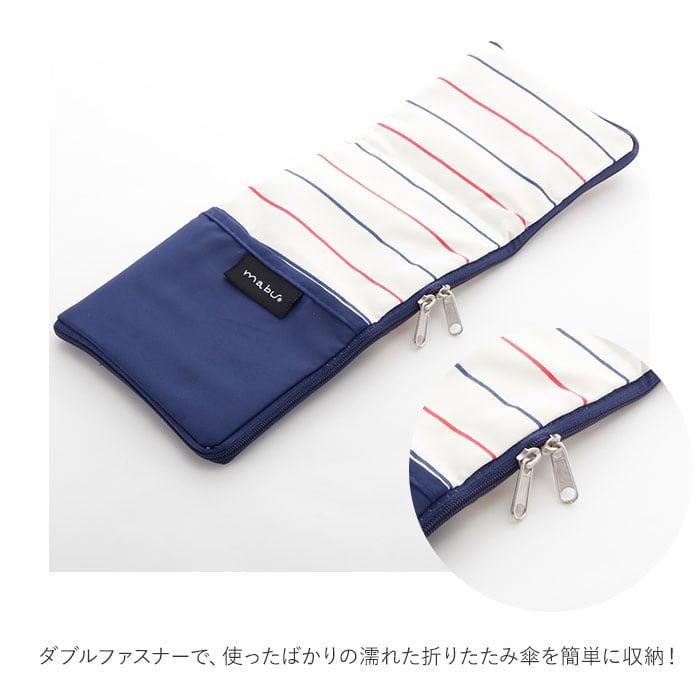 傘ケース マイクロファイバー 通販 おしゃれ かわいい レディース メンズ ブランド mabu マブ シンプル デザイン 大きめ ダブルファスナー ポケット付き ボーダー ストライプ トライアングル チェリー チェック 傘袋