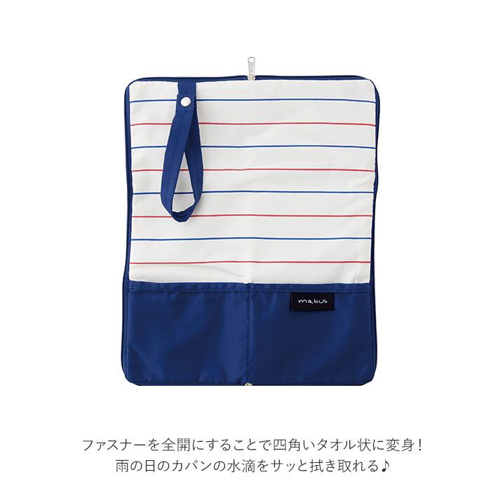 ・ファスナーを全開にすることで四角いタオル状に変身!雨の日、外出から帰った後のカバンの水滴をサッと拭き取れる。