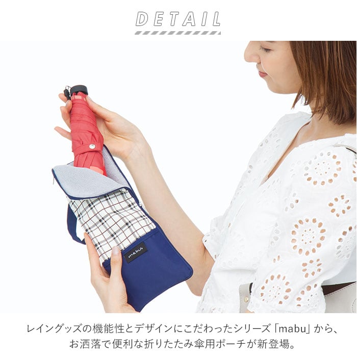 ・晴れの日も雨の日も快適に過ごすために、レイングッズの機能性とデザインにこだわったシリーズ「mabu」から、お洒落で便利な折りたたみ傘用ポーチが新登場。