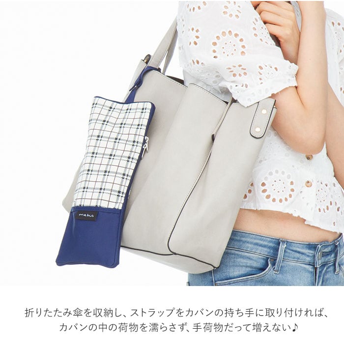 ・折りたたみ傘を収納した状態で、ストラップをカバンの持ち手に取り付ければ、傘の持ち運びが楽ちん。
