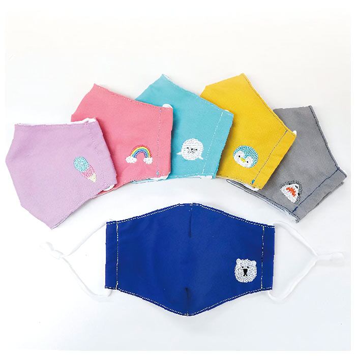 ・ちょこんと入ったワンポイント刺繍がとっても可愛い、キッズサイズの布マスク♪