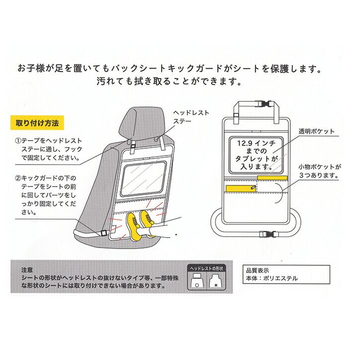 ※シートの形状がヘッドレストの抜けないタイプ等、一部特殊な形状のシートには取り付けできない場合があります。
