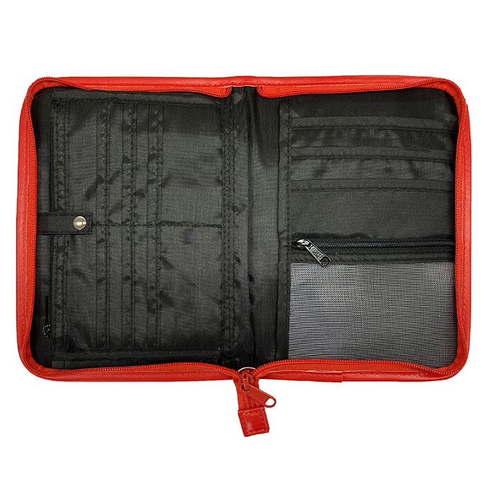 ・内部にはジャバラ式ポケット、中身が飛び出さない大きめファスナーポケット×1、カードポケット×6を装備。