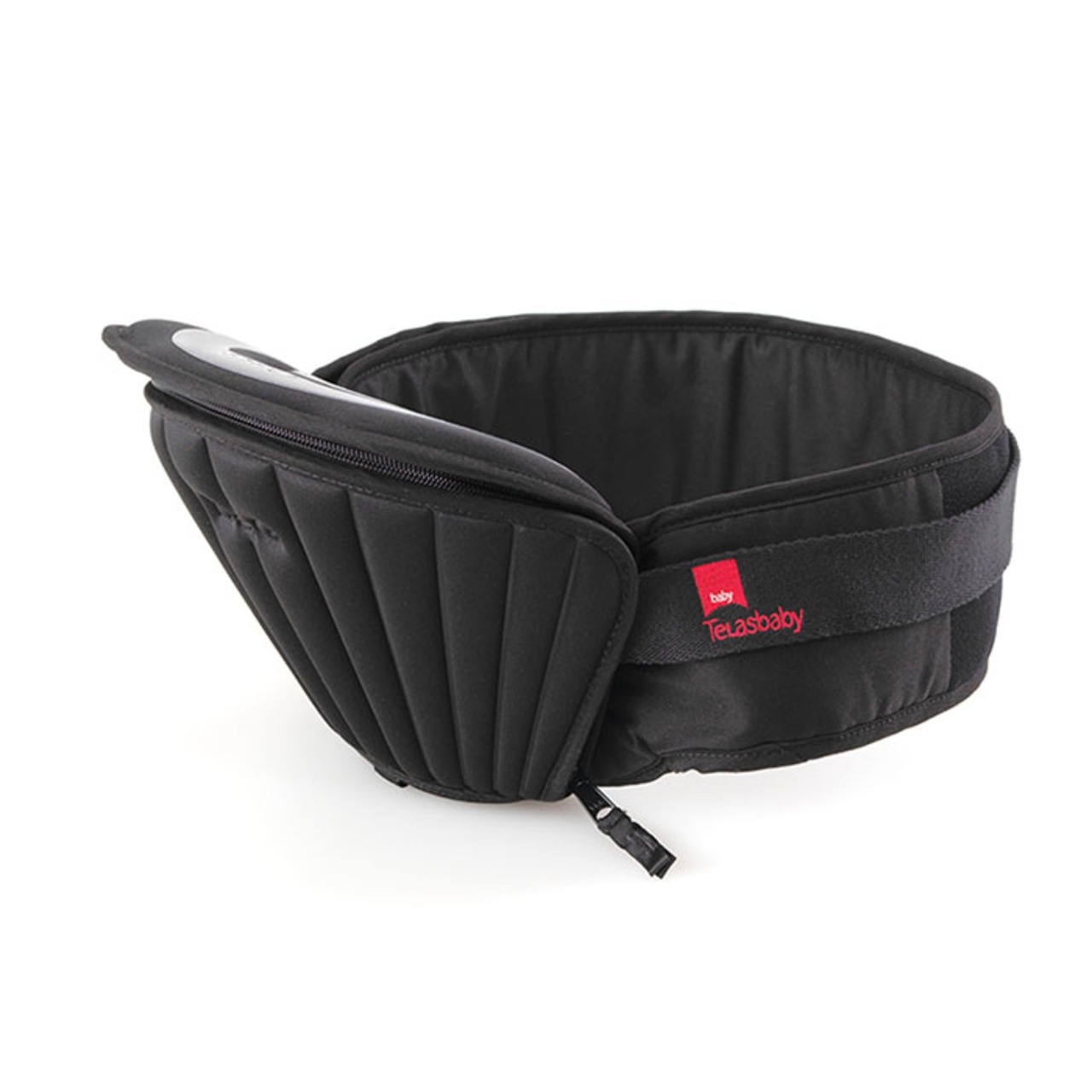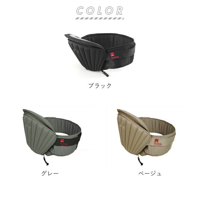 ・腰に巻くと平らなクッション部分が作れるので、赤ちゃんを抱っこする時や横に抱いたりする時にファスナーを組んで使うことができる。