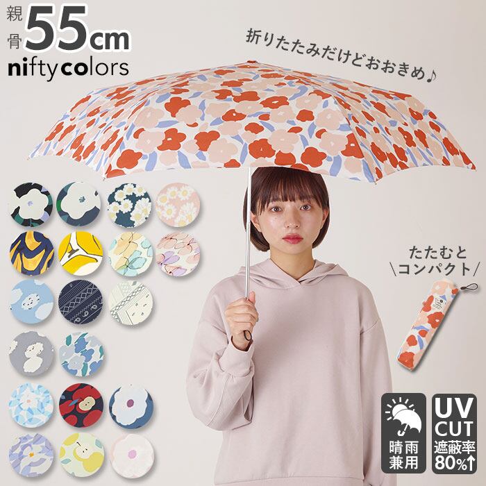 折りたたみ傘 軽量 レディース 通販 晴雨兼用 55センチ 雨傘 折り畳み傘 55cm 日傘 おしゃれ かわいい 花柄 紫外線 雨 熱中症対策 婦人傘 6本骨 グラスファイバー 丈夫 ブランド ニフティカラーズ