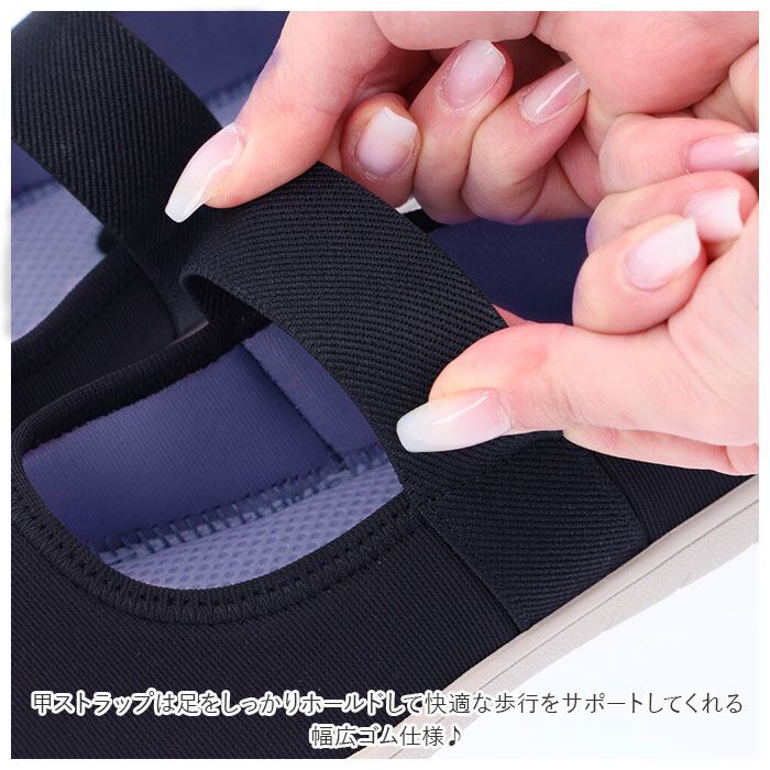 ・甲ストラップは足をしっかりホールドして快適な歩行をサポートしてくれる幅広ゴム仕様♪