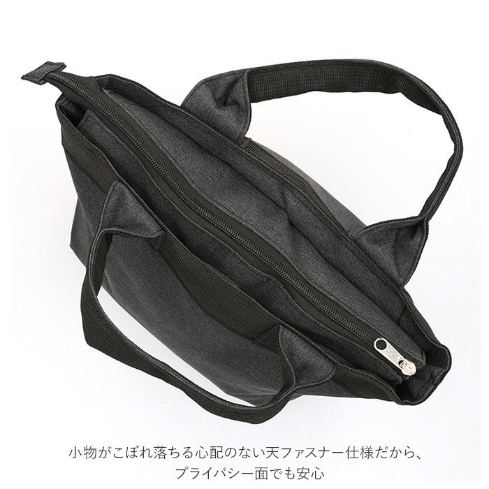 ・小物がこぼれ落ちる心配のない天ファスナー仕様だから、プライバシー面でも安心。