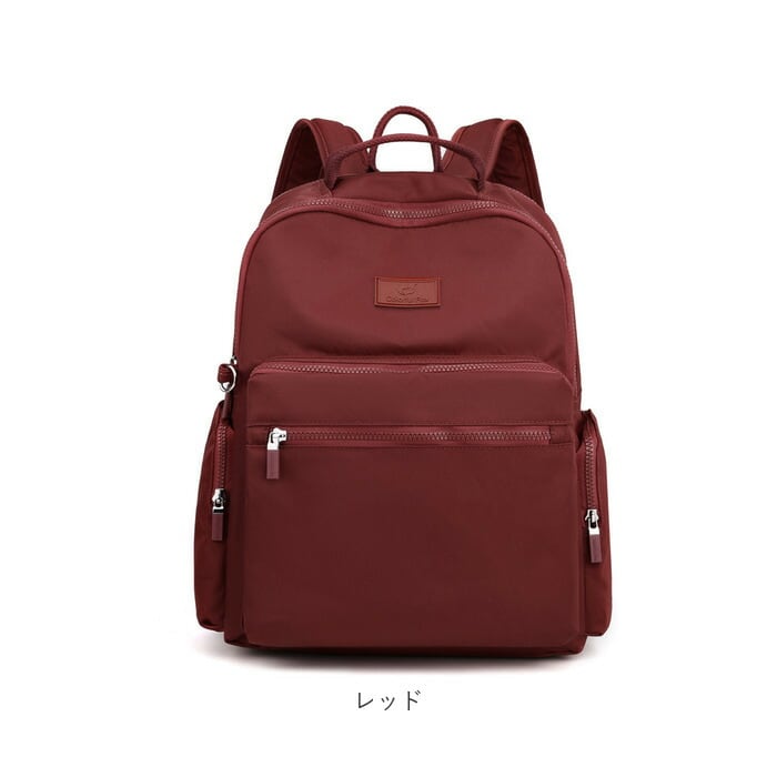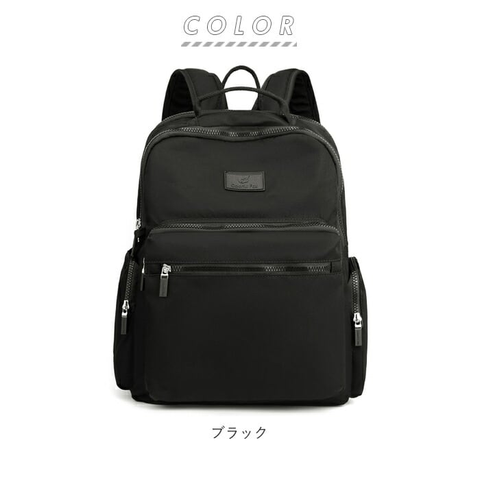 ・フロントにはサッと取り出したい小物の収納に便利な、ファスナーポケット×2を配置。キーホルダーなどを取り付けられるDカン付き。