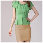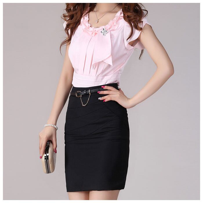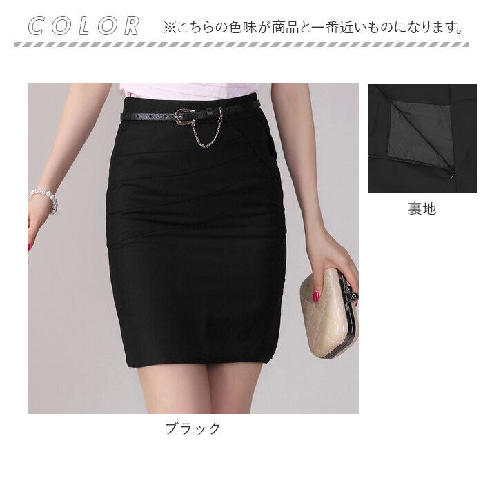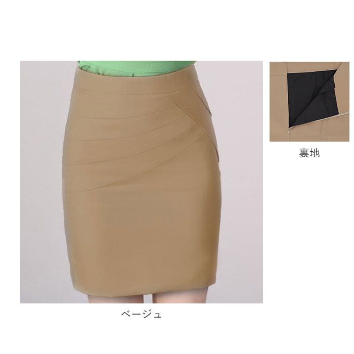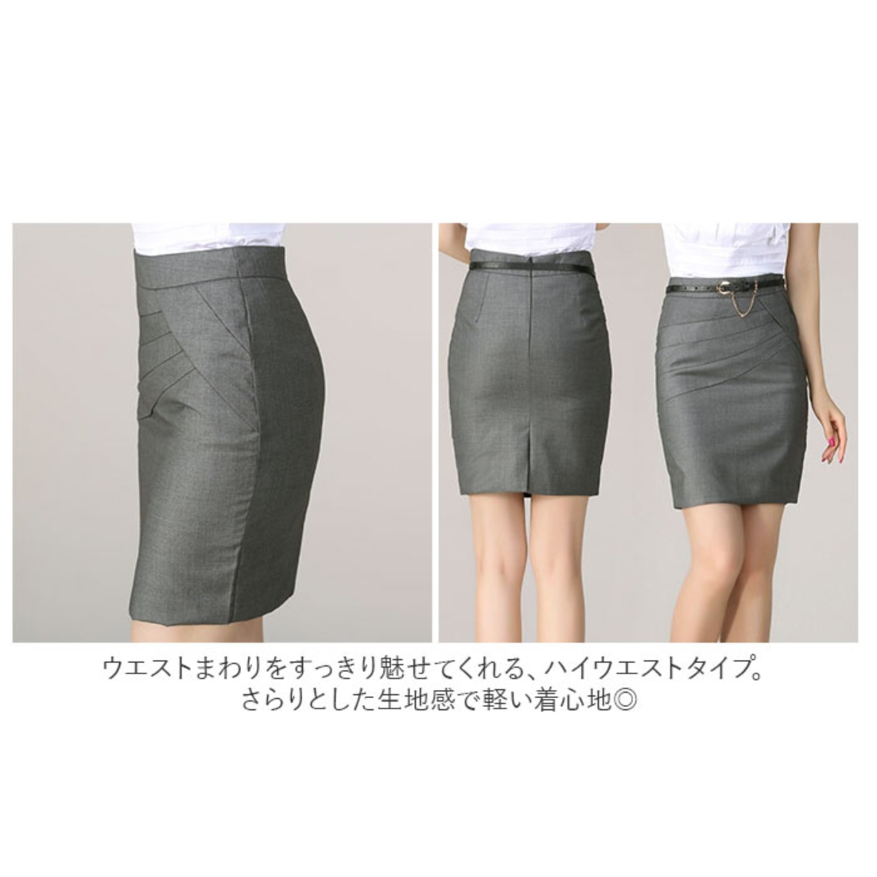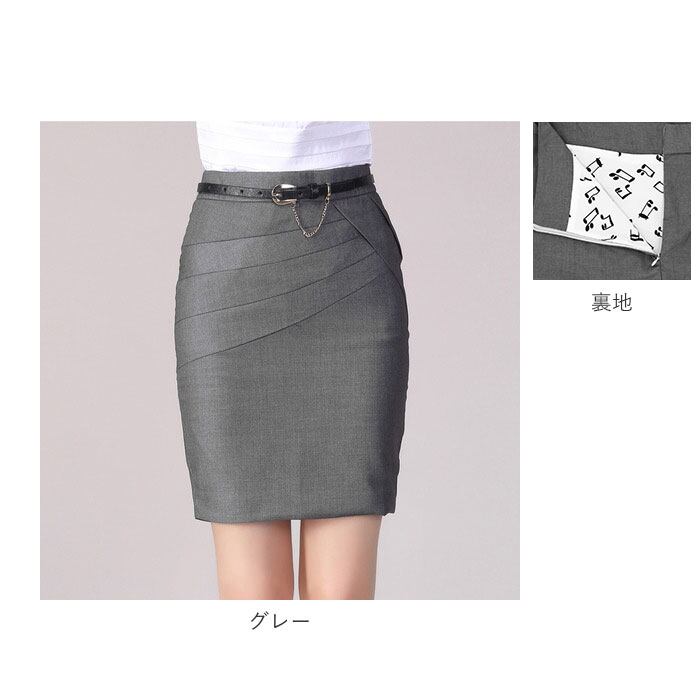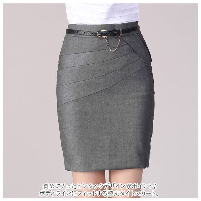・斜めに入ったピンタックデザインがポイント♪ボディラインにフィットする膝丈タイトスカート。