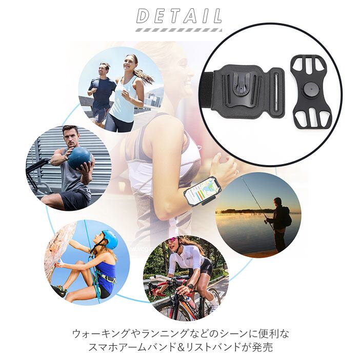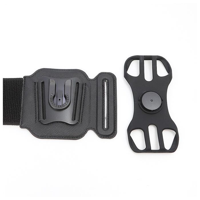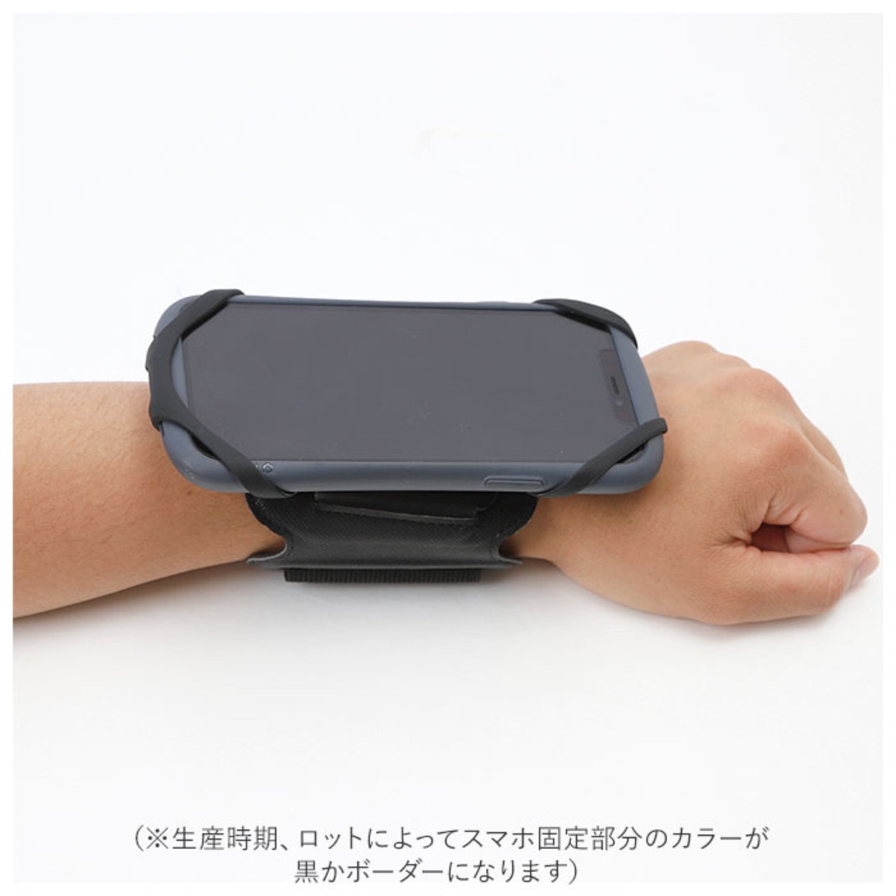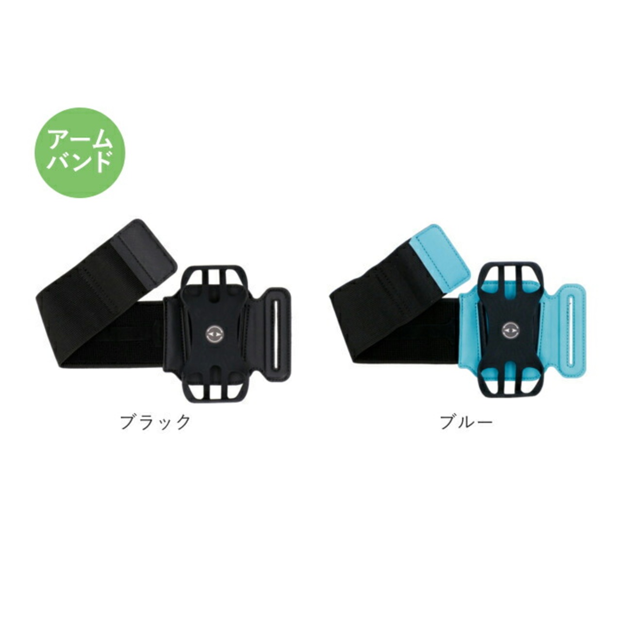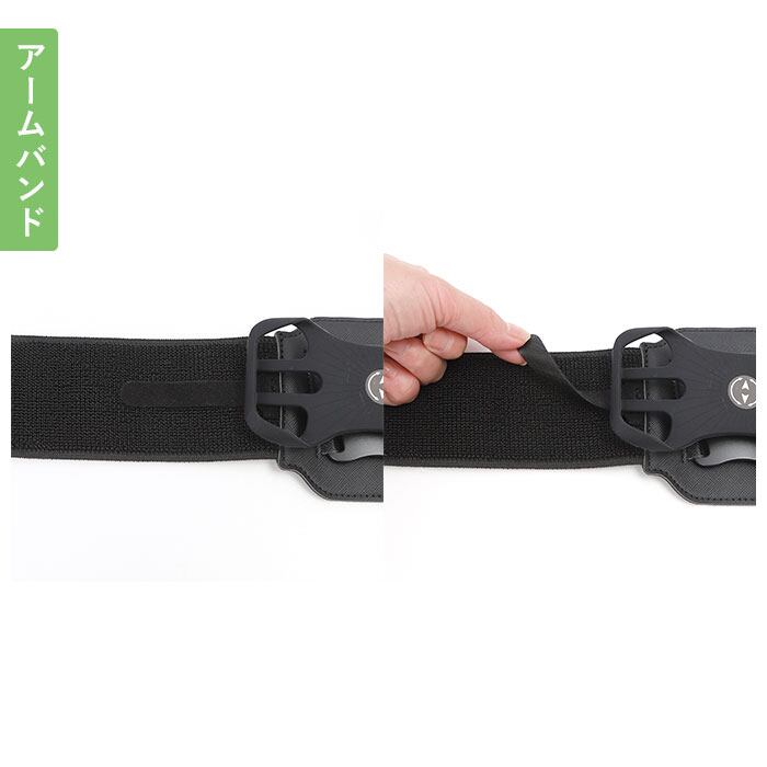 ・スマホホルダー部分が360度回転し、バンドへの付け外しも簡単。