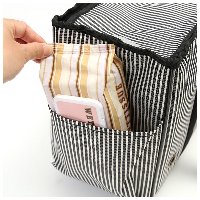 ・バッグ前面と左側面には、ウェットティッシュやマナーウェア、おやつを入れておくのに便利なオープンポケット付き。