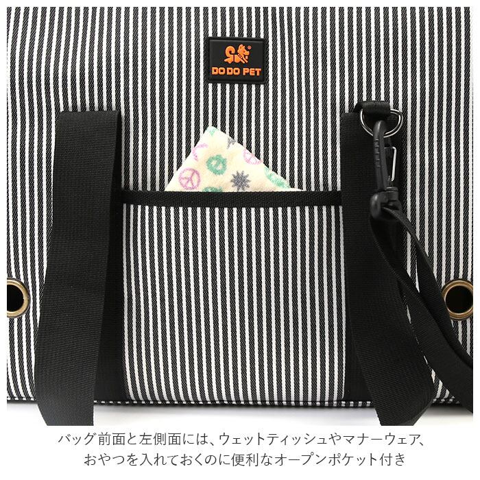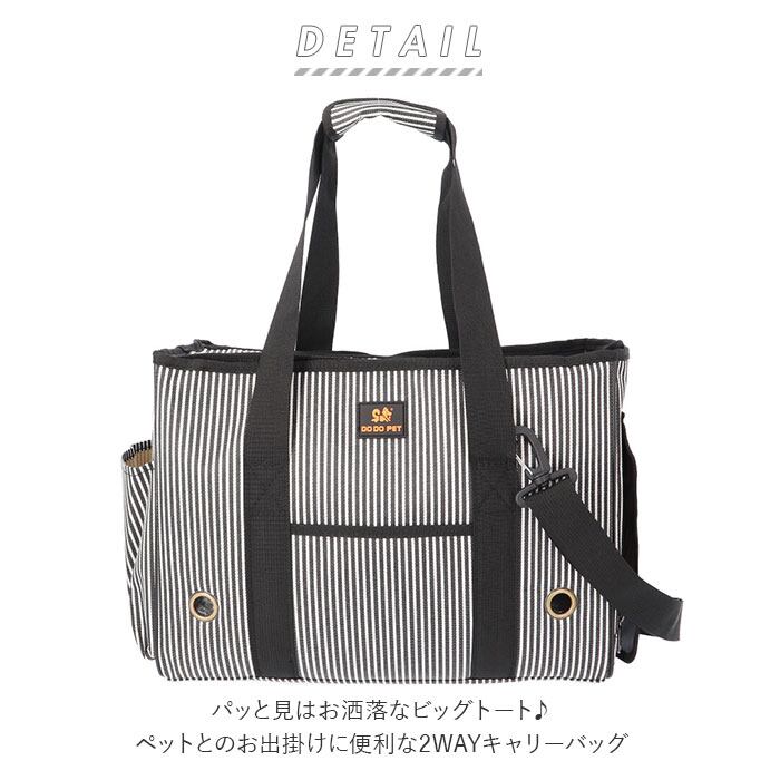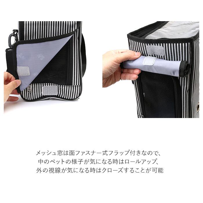 ・ペット同伴でも目立たないお洒落なストライプデザインで、電車やバスでの移動もラクラク。