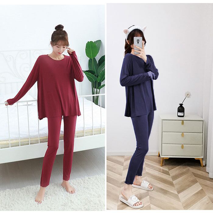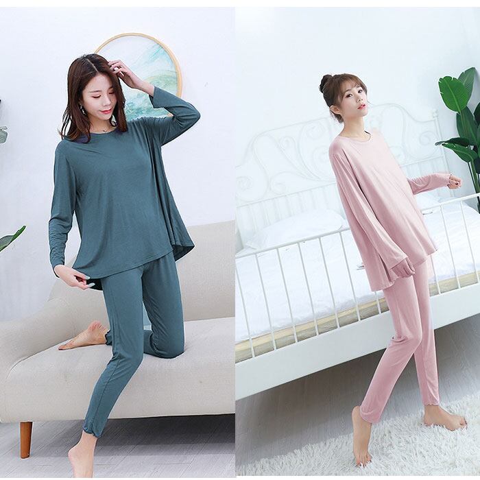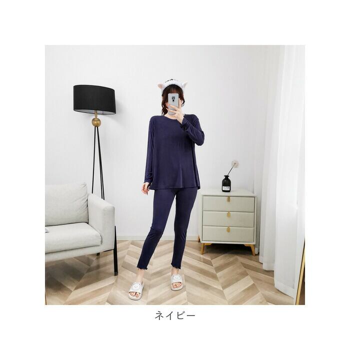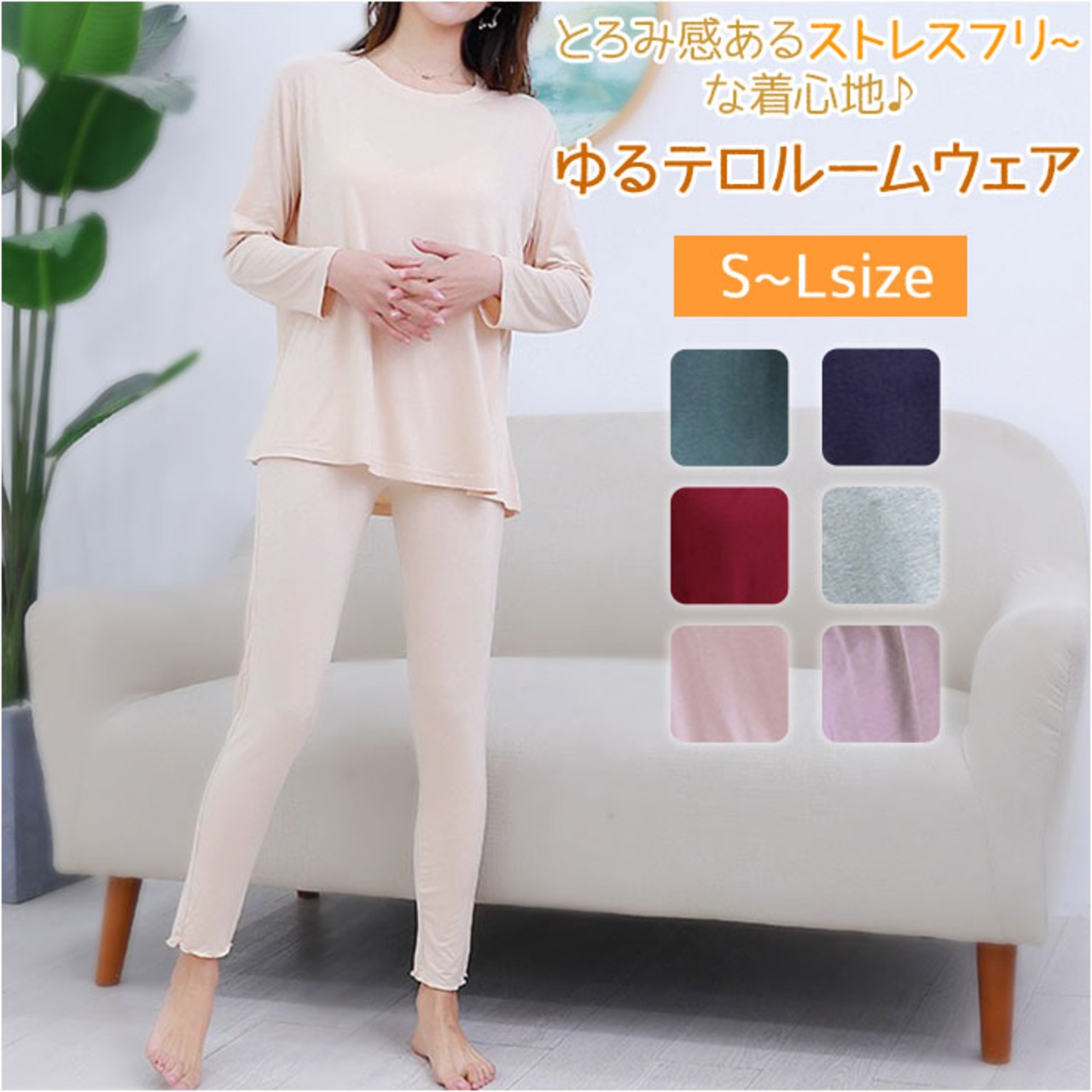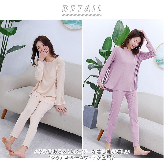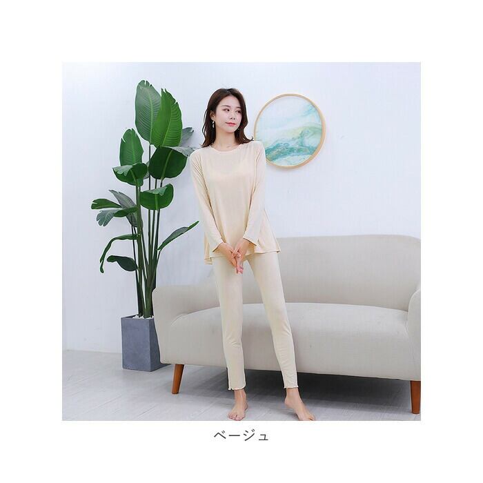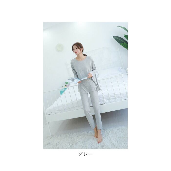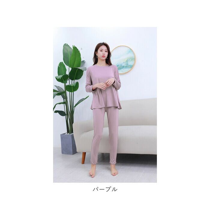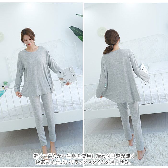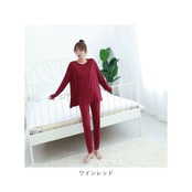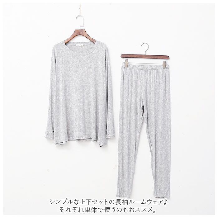 ・シンプルな上下セットの長袖ルームウェア♪それぞれ単体で使うのもおススメ。