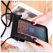 ・大きなクリア窓のオープンポケットにスマホを入れれば、ポーチから出さずに操作できるのも嬉しいポイント。
