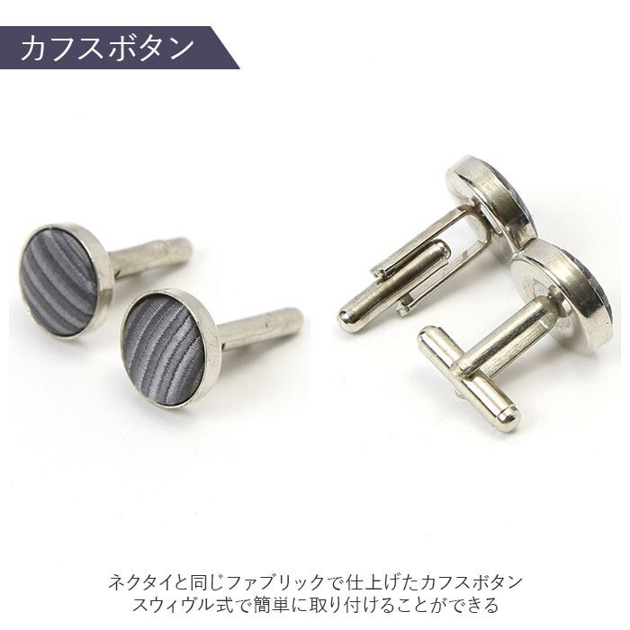 ・ネクタイと同じファブリックで仕上げたカフスボタンでトータルコーディネートが完成。スウィヴル式で簡単に取り付けることができ、袖口でキラリと光るさりげないアクセントに。