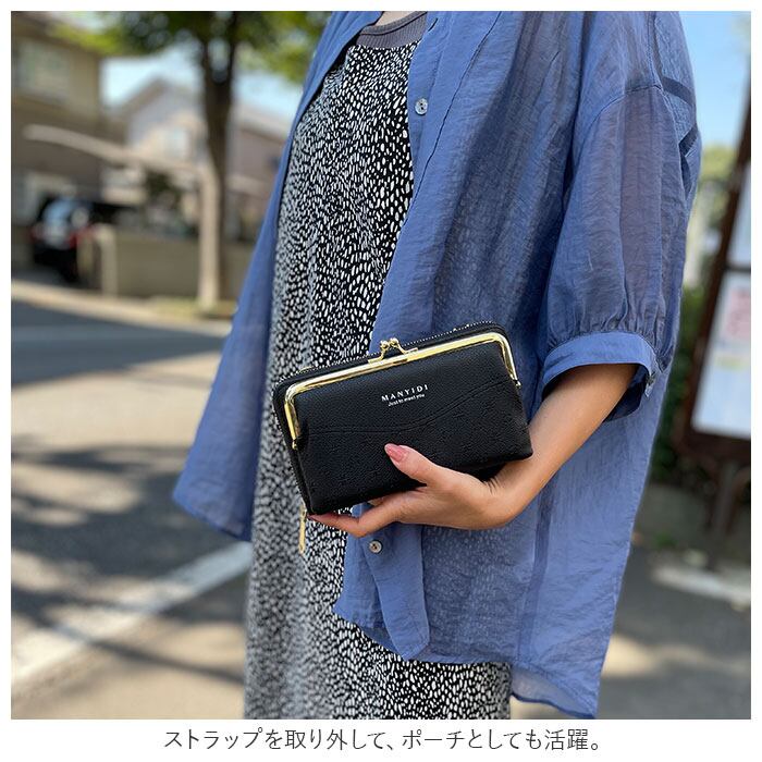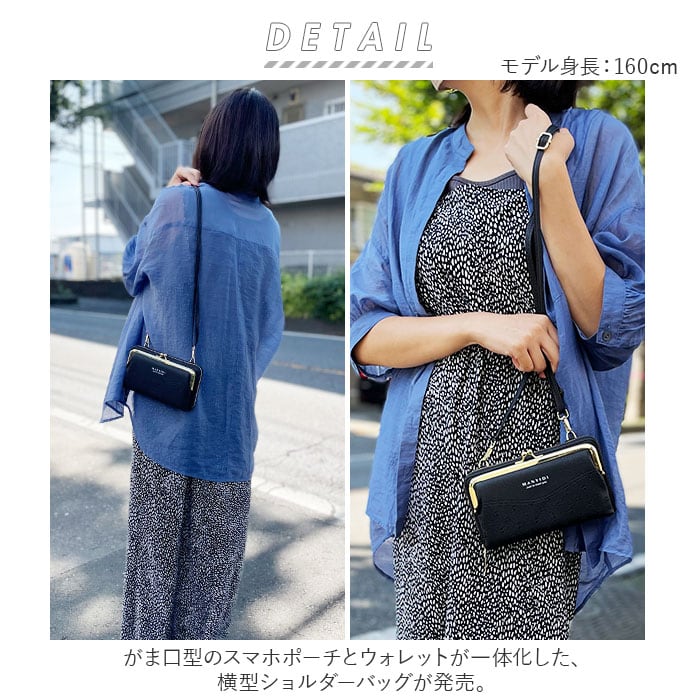 ・がま口型のスマホポーチとウォレットが一体化した、横型ショルダーバッグが発売。