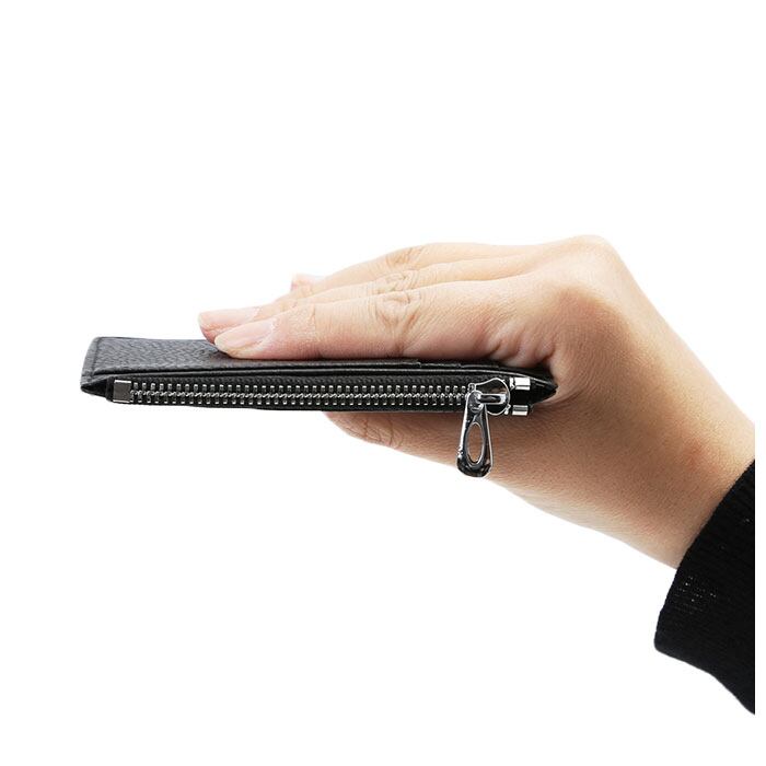 ・ジップ式の小銭入れ、フリーポケット×2、カードポケット×6と、収納スペースが充実。コンパクトで極薄ながら、見た目以上の収納力◎