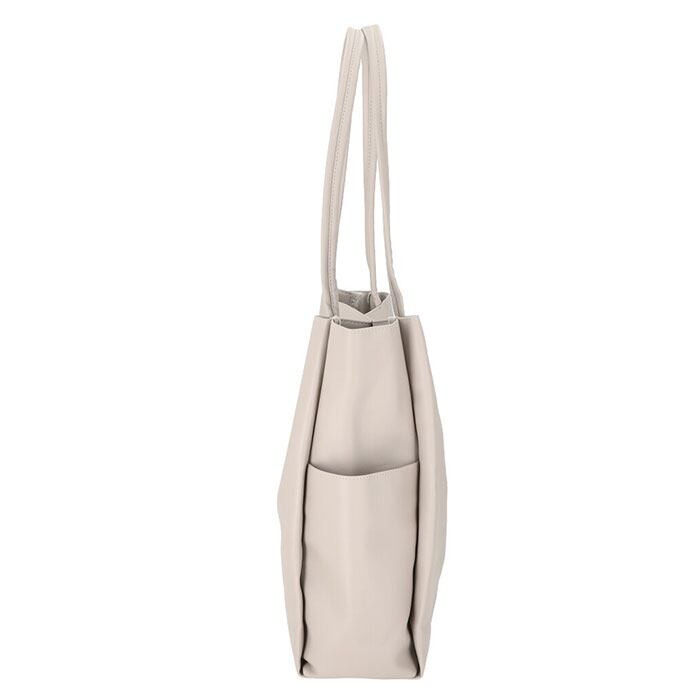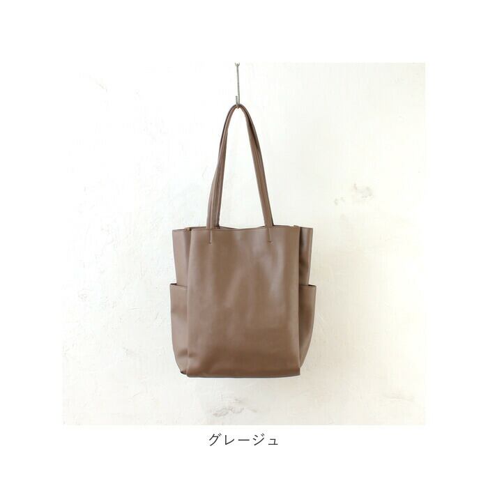 ・柔らかく滑らかな手触りのフェイクレザー素材を使用。肩に掛けても手持ちでも馴染みやすく、オンオフ問わず活躍!